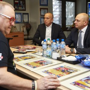 Dziś (9 lutego) w Fundacji WOŚP odbyło się niezwykłe spotkanie wspaniałych ludzi: najbardziej hojnych darczyńców WOŚP, w którym uczestniczyli: Jurek Owsiak, Pan Prezes Europejskiego Centrum Odszkodowań Krzysztof Lewandowski, Pan Maciej Skomorowski oraz Pan Norbert Rekowski Prezes firmy EuCOcar, którzy wylicytowali Złote Serduszka oraz Złote Karty nr 1 i 2 z 25. Finału WOŚP.