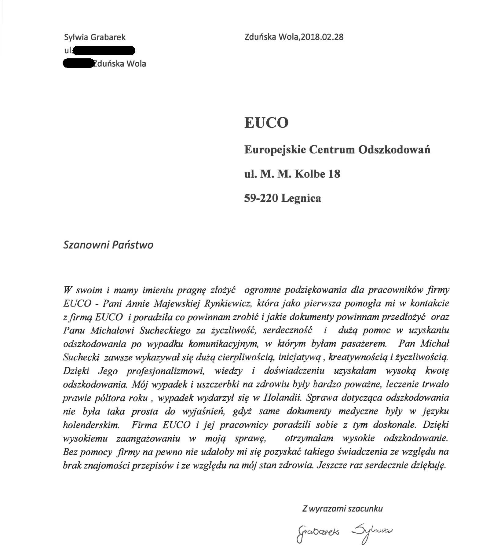 Otrzymaliśmy kolejne podziękowania od zadowolonych Klientek EuCO ? tym razem pod adresem Adrianny Lesiuk, Anny Majewskiej-Rynkiewicz i Michała Sucheckiego.